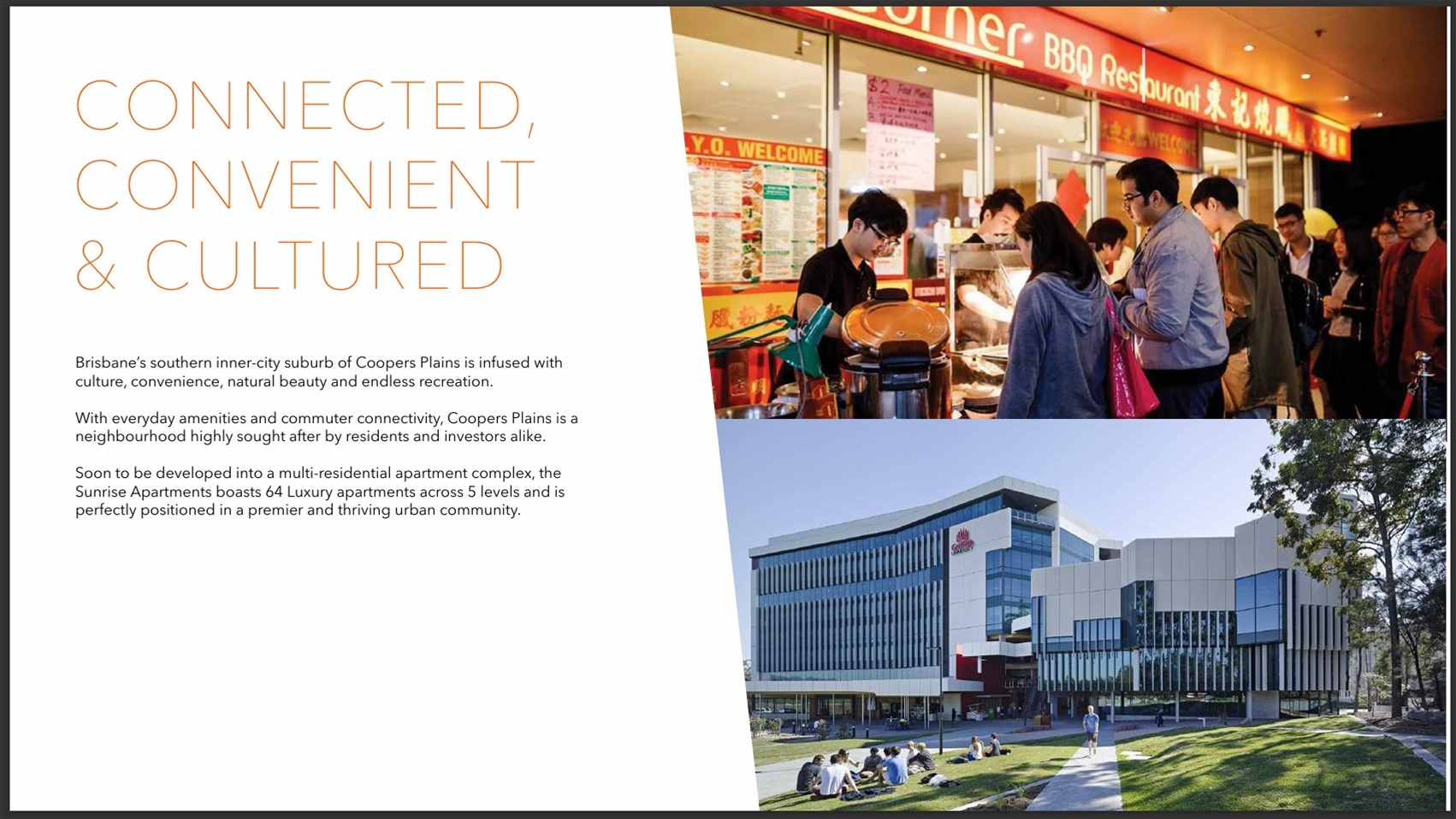 Welcome to Sunrise on Deacon, an exciting new residential release in one of Coopers Plains’ fastest‑evolving pockets. Offering a selection of beautifully crafted 1 and 2 bedroom apartments, this boutique project delivers exceptional value for buyers seeking style, convenience and long‑term growth.With demand already running high, now is the time to secure your preferred apartment.Spread across five architecturally designed levels, the building features 64 contemporary residences that blend premium finishes with practical layouts — perfect for first‑home buyers, downsizers and investors wanting a low‑maintenance, high‑appeal property.Every home has been carefully planned to enhance natural light, comfort and usability, with quality materials and modern design elements throughout.Apartment InclusionsChoice of 1 or 2 bedroom floorplansLight‑filled open living and dining zonesStylish kitchens with stone benchtops and quality appliancesWell‑proportioned bedrooms with built‑in robesSleek bathrooms with premium fixtures and full‑height tilingSplit‑system air‑conditioningPrivate balconies ideal for outdoor relaxationDevelopment HighlightsBoutique complex of 64 architecturally designed apartmentsHigh‑end finishes including stone surfaces and porcelain tilesSecure entry with intercom and keyless accessLift servicing all levelsSecure basement parking with remote accessNBN‑ready for seamless connectivityDesigned for low‑maintenance, lifestyle‑focused livingStrong rental and capital growth appealUnbeatable LocationApprox. 15 minutes to Brisbane CBDWalk to train station and public transportClose to Griffith University and QEII HospitalMinutes to Sunnybank and Garden City shopping hubsEasy access to major motorwaysSurrounded by parks, schools and everyday conveniencesSunrise on Deacon offers a rare chance to secure a brand‑new, turn‑key apartment in a thriving, well‑connected suburb. With strong rental demand, modern finishes and outstanding value, these residences are an excellent choice for both living and investing.For further information or to secure your apartment, contact Razi on 0413 07 1973.Legal DisclaimerAll information provided is believed to be accurate at the time of publication but may be subject to change without notice. Interested parties should make their own enquiries and obtain independent advice to verify the details, inclusions, specifications and availability. Images, descriptions and floorplans are indicative only and may not represent the final product. The agent and developer accept no liability for any errors or omissions.