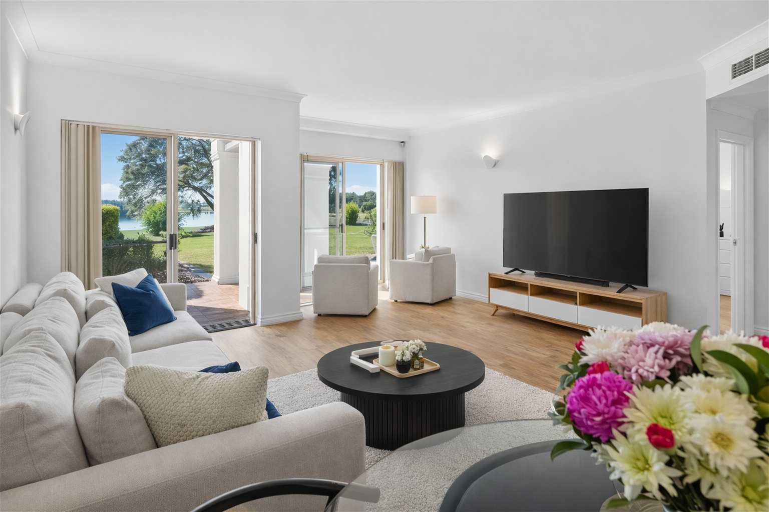 Inspection By Appointment only as this is a gated community. Opportunities like this are exceptionally rare. This ground-floor luxury apartment, located within the prestigious Magnolia precinct at Troon, delivers an outstanding lifestyle defined by space, privacy, and breathtaking outlooks.Comprehensively renovated to an exceptional standard, the residence showcases quality craftsmanship and refined design from the moment you enter through the private gated entry. Every detail has been thoughtfully considered, creating a home that is both elegant and highly functional, with a seamless flow between indoor and outdoor living.The apartment enjoys a prized northeast-facing aspect, capturing beautiful natural light and offering uninterrupted views across the 17th fairway and Lake Lugano. Whether entertaining guests or enjoying quiet moments at home, the outlook provides a sense of openness and tranquillity that is rarely found.With approximately 140mΒ² of generously proportioned living, this true ground-floor residence offers step-free convenience, making it ideal for downsizers, professionals, or those seeking a low-maintenance lifestyle without compromise.Property Highlightsβ¨ Fully renovated throughout with premium finishesπ Expansive golf course and water viewsπ Approx. 140mΒ² of spacious, well-designed livingβοΈ Northeast orientation for all-day natural lightπΆ Ground-floor position with no stairsποΈ Two large bedrooms, each with their own full bathroomπ Master suite with walk-in robe and ensuite featuring spa bathπ½οΈ Central kitchen with stone benchtops and quality appliancesποΈ Spacious lounge and dining areas with wide water viewsπ‘ Separate living zone or optional third bedroomπΌ Built-in study or home officeπ¨ Freshly painted with new flooring and LED lighting throughoutβοΈ High ceilings, ducted air conditioning, and security alarmπ§Ί Separate laundry with excellent storageπΏ Outdoor entertaining area with grassed space flowing onto the golf course and buggy pathπ Single lock-up garage with internal access and private courtyardπ§Ή Extremely low-maintenance livingπ‘οΈ Secure complex with 24-hour manned securityThis beautifully appointed residence offers luxury, convenience, and an exceptional lifestyle, set within one of the areaβs most exclusive and tightly held enclaves.
