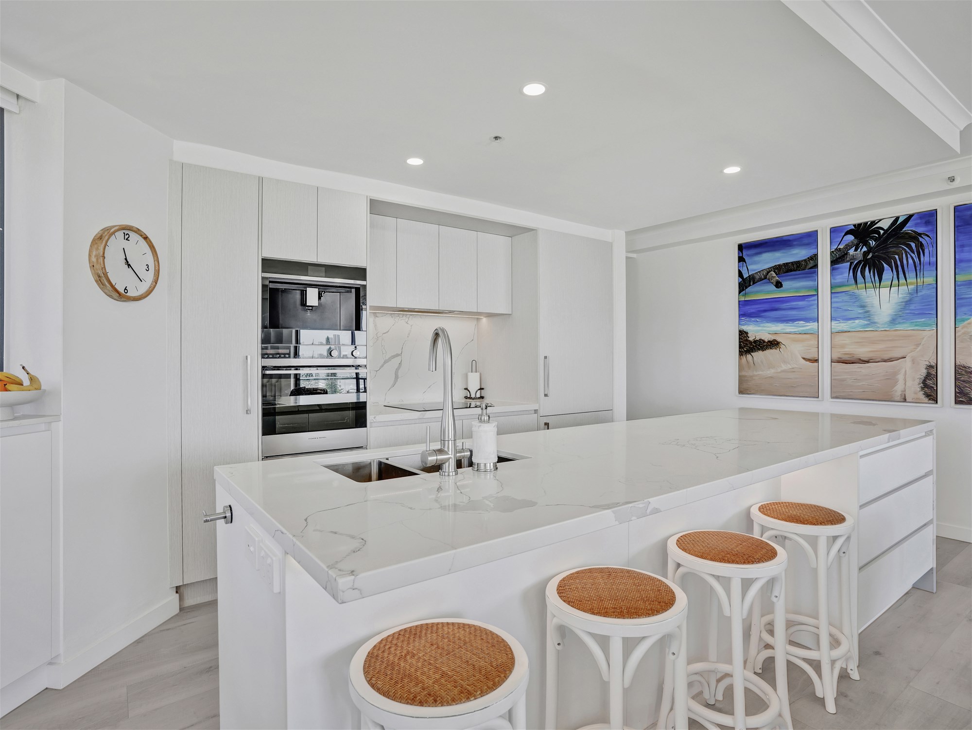 Luxury Coastal Living with Unrivaled Ocean ViewsEnsure this golden opportunity doesn’t slip through your fingers. Showcasing breathtaking views across the Main Beach coastline, this is a residence you simply won’t want to miss.Set within one of Main Beach’s most exclusive residential-only buildings at the eastern end of the 5th floor this exceptional apartment delivers a seamless blend of high-end design and everyday functionality.A quality, bespoke renovation sets the tone throughout, highlighted by a stunning kitchen featuring 40mm stone benchtops, soft-close cabinetry with textured finishes, and an inline water filtration system. Equipped with top-of-the-range Fisher & Paykel appliances—including a built-in coffee machine, microwave oven, integrated fridge and dish drawer, induction cooktop, and pyrolytic oven this space is designed for both effortless living and entertaining.The spacious, light-filled living area is complemented by premium hybrid timber flooring and full LED lighting, creating a warm yet sophisticated atmosphere. Two generously sized bedrooms are on offer, including a luxurious master suite complete with walk-in robe and a beautifully renovated ensuite. A separate study provides flexibility and can easily be converted into a third bedroom.Step outside to the enormous north east and south-east facing balconies that truly define this home—an extension of the living space and an entertainer’s dream. A movable shutter system enhances privacy and comfort, allowing for year-round enjoyment.Additional features include stone benchtops in the main bathroom and laundry, NBN fibre-to-the-premises internet, and thoughtfully designed storage throughout.Just moments from Tedder Avenue’s vibrant cafés, restaurants and boutiques, a two minute stroll to the beach, and close to the Southport Yacht Club, the lifestyle on offer is second to none.Residents enjoy access to extensive resort-style facilities, including: Heated indoor pool and spa Outdoor resort-style pool Tennis court Sauna and fully equipped gym Billiards room Residents’ pavilion and BBQ area Secure underground parking Onsite management and impressive entry foyerA strictly residential-only building, ensuring peace, privacy, and long-term value in one of the Gold Coast’s most sought-after pockets.An exceptional place to call home or your luxurious holiday home this opportunity is not to be missed.