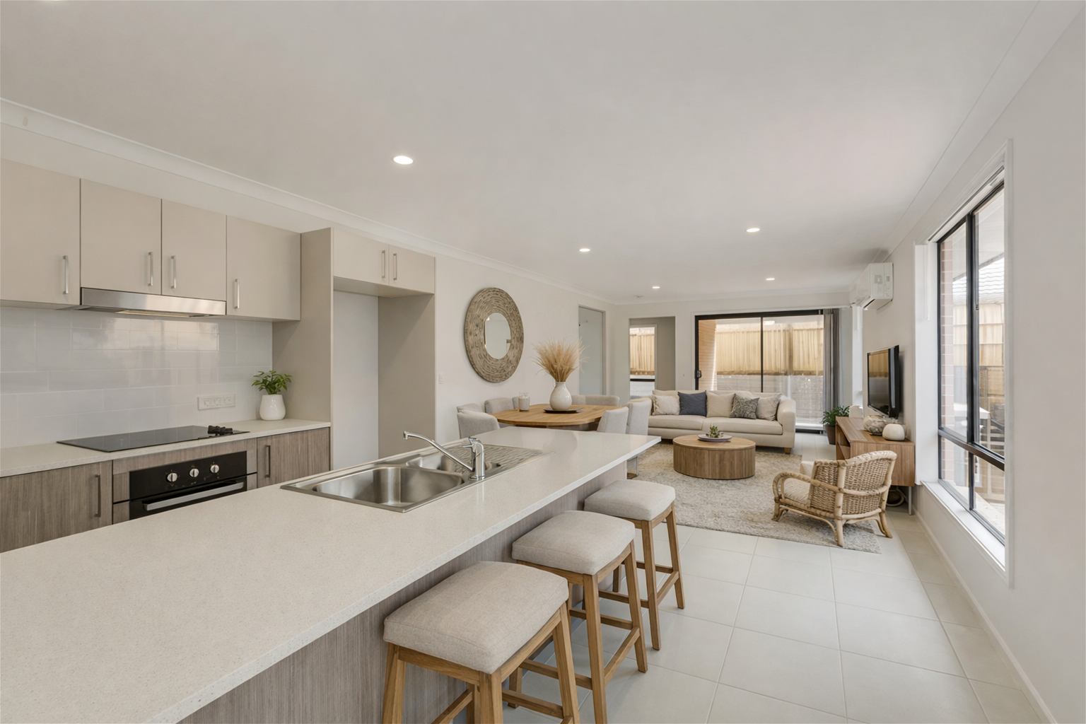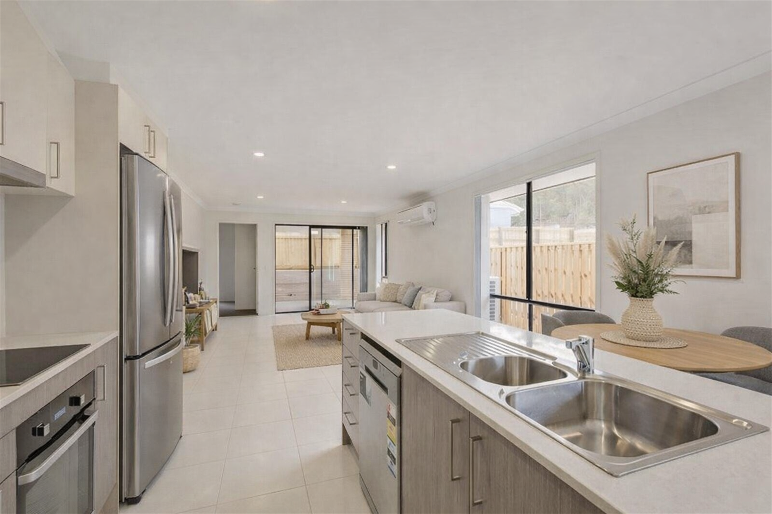 Positioned in a thriving, family-friendly pocket of Redbank Plains, this beautifully presented three-bedroom home delivers modern comfort, smart design, and exceptional convenience. Ideal for families, couples, first-home buyers, or investors, the property has been thoughtfully designed to suit today’s low-maintenance lifestyle while still offering warmth and functionality.At the heart of the home is the contemporary galley-style kitchen, featuring white granite benchtops, quality European appliances including an electric cooktop, oven, and Omega dishwasher, and generous cabinetry for storage. The kitchen flows seamlessly into the open-plan living and dining area, creating a bright and welcoming space ideal for everyday living and entertaining. Split-system air conditioning ensures year-round comfort, while large windows allow natural light to enhance the modern interiors.All three bedrooms are well-proportioned and include built-in wardrobes and ceiling fans for added comfort. The master bedroom is privately positioned and offers its own ensuite along with split-system air conditioning, creating a relaxing retreat. The remaining two bedrooms are serviced by a stylish main bathroom complete with a walk-in glass shower and separate bathtub—perfect for families or guests.Outdoors, the covered alfresco patio provides the ideal space for morning coffees, casual dining, or entertaining friends. The fully fenced, low-maintenance backyard allows you to enjoy outdoor living without the burden of constant upkeep, making it ideal for busy households or those seeking a lock-up-and-leave option.Additional features include a double garage with remote access, offering secure parking and extra storage. Set on a 263m² east-facing block, the home enjoys pleasant morning sunlight and an easy-care allotment.The location is a true highlight. The property is just a three-minute walk to Staines Memorial Private School, local sporting fields, a newly built Woolworths, cafés, and everyday conveniences. Fernbrooke State School is approximately 1.7km away, while Orion Springfield Central, Springfield Central Train Station, and major arterial roads are all within easy reach, providing excellent connectivity to Brisbane and surrounding areas. Nearby parks, walking tracks, and community facilities further enhance the lifestyle appeal of this growing precinct.Offering a superb balance of modern style, everyday practicality, and an ultra-convenient location, this home represents an outstanding opportunity in one of Redbank Plains’ most sought-after neighbourhoods.For further information or to arrange a private inspection, please contact Vince.